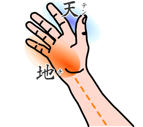 Cette dualité Ciel-Terre qui s’apparente au YIN-YANG est importante : le côté Terre (CHI 地) doit être solide, stable, fixe ; alors que la partie Ciel (TEN 天) doit être plus légère, relaxée et flexible. La pratique demande de travailler avec l’une ou l’autre des parties de manière fluide selon le besoin du mouvement ou de l’exercice.